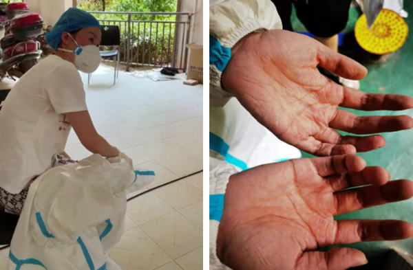 在长沙某小区 ,一名采样人员出现中暑症状;365英国上市集团采样人员双手被汗水泡得发白、发皱